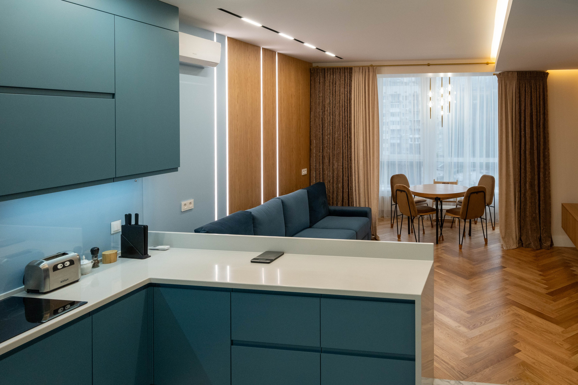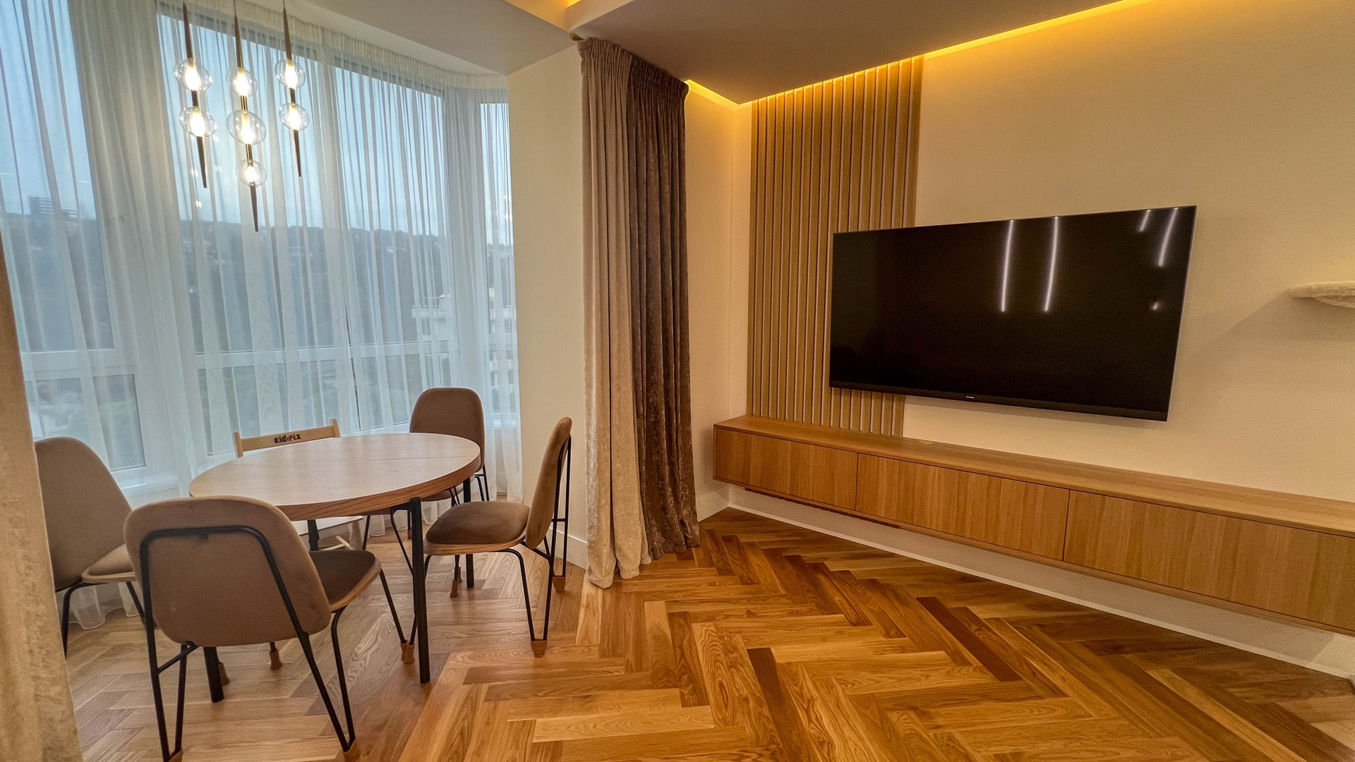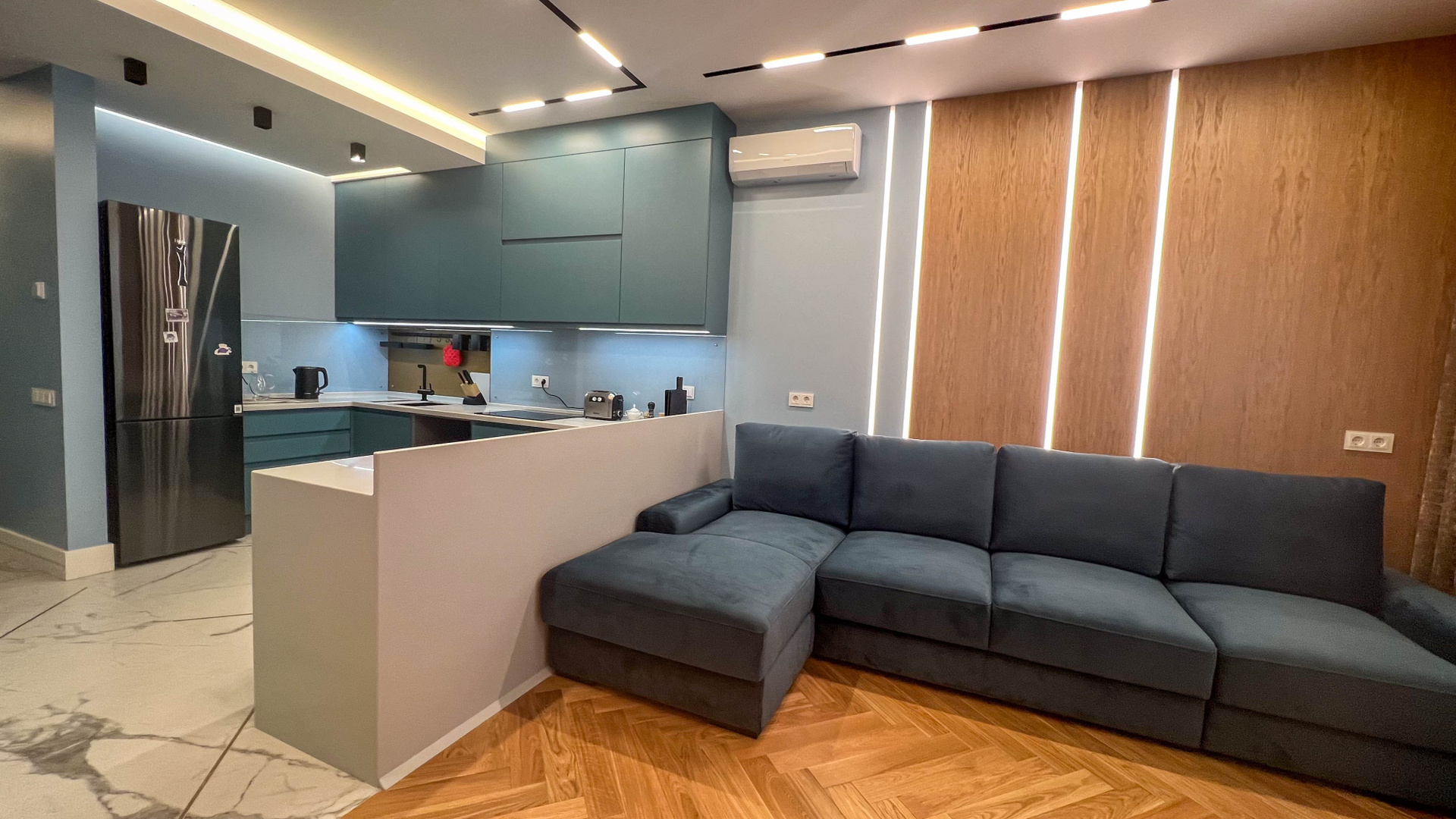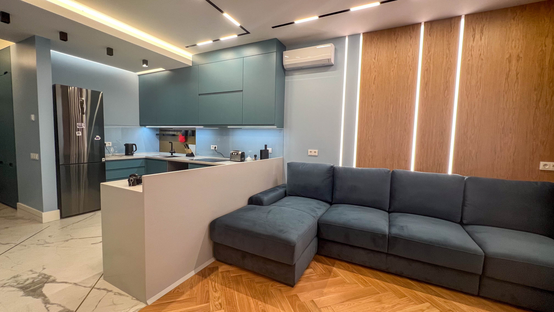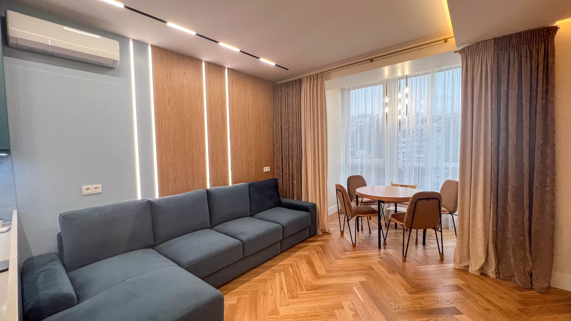 The apartment is in a modern style