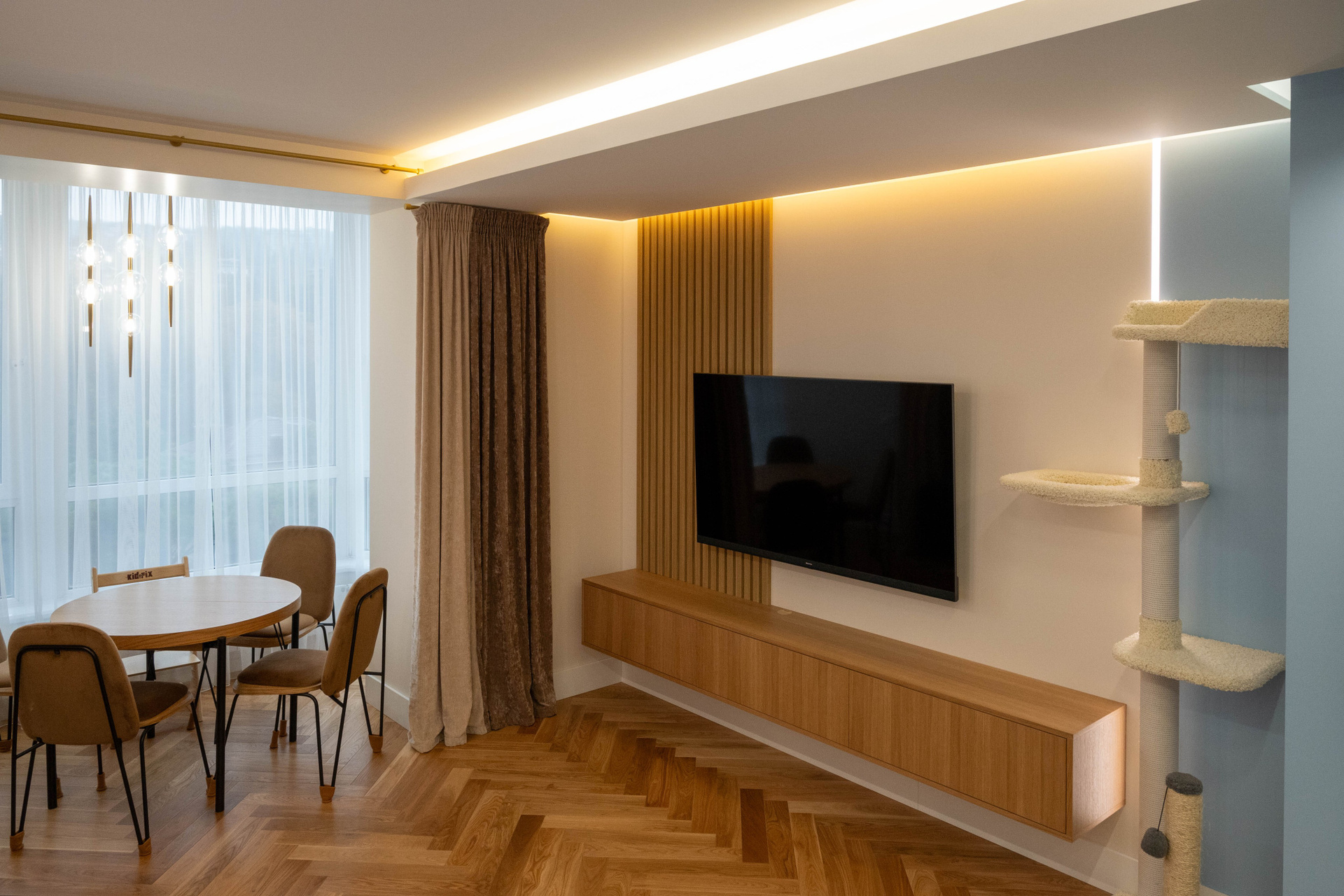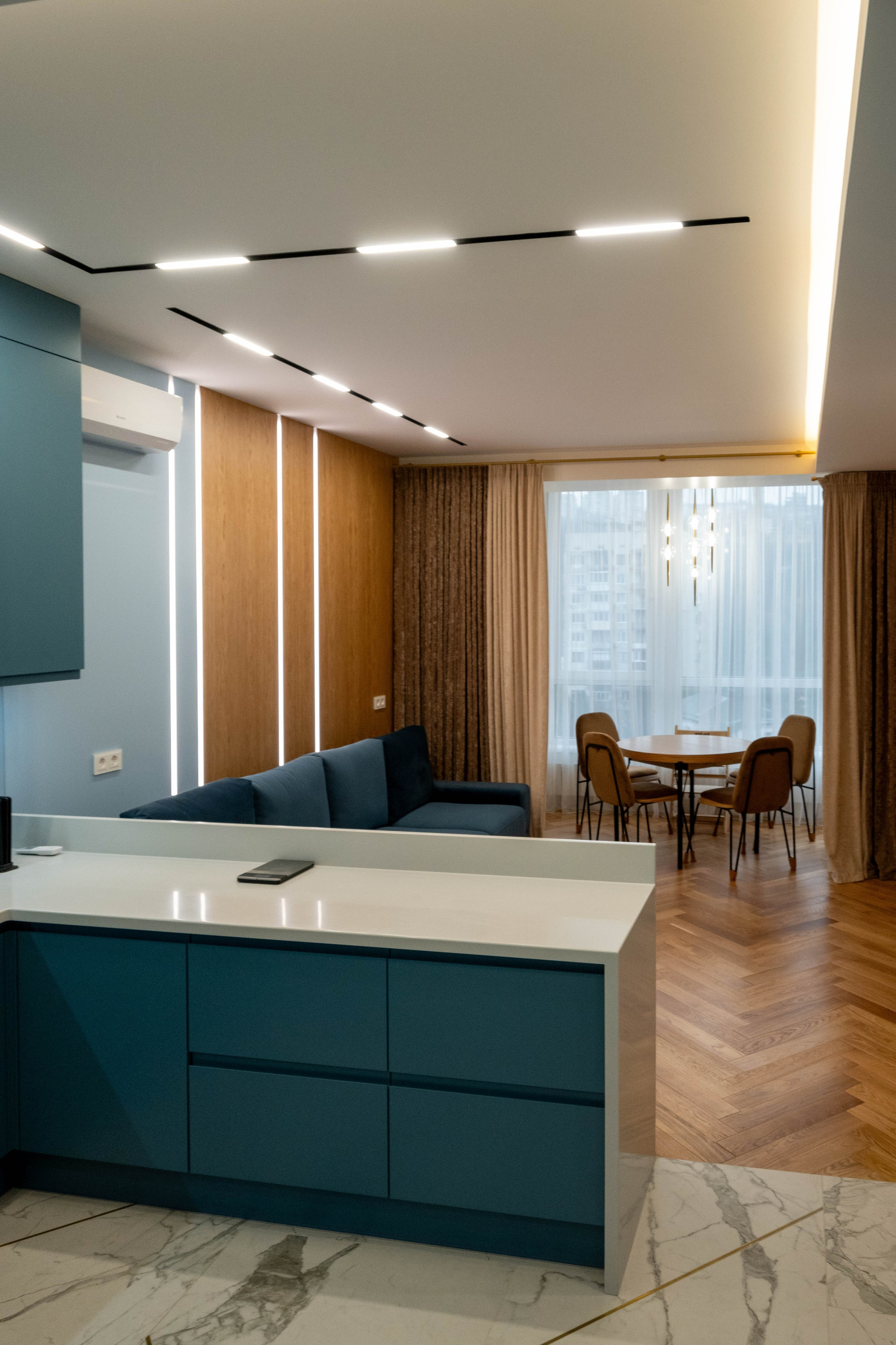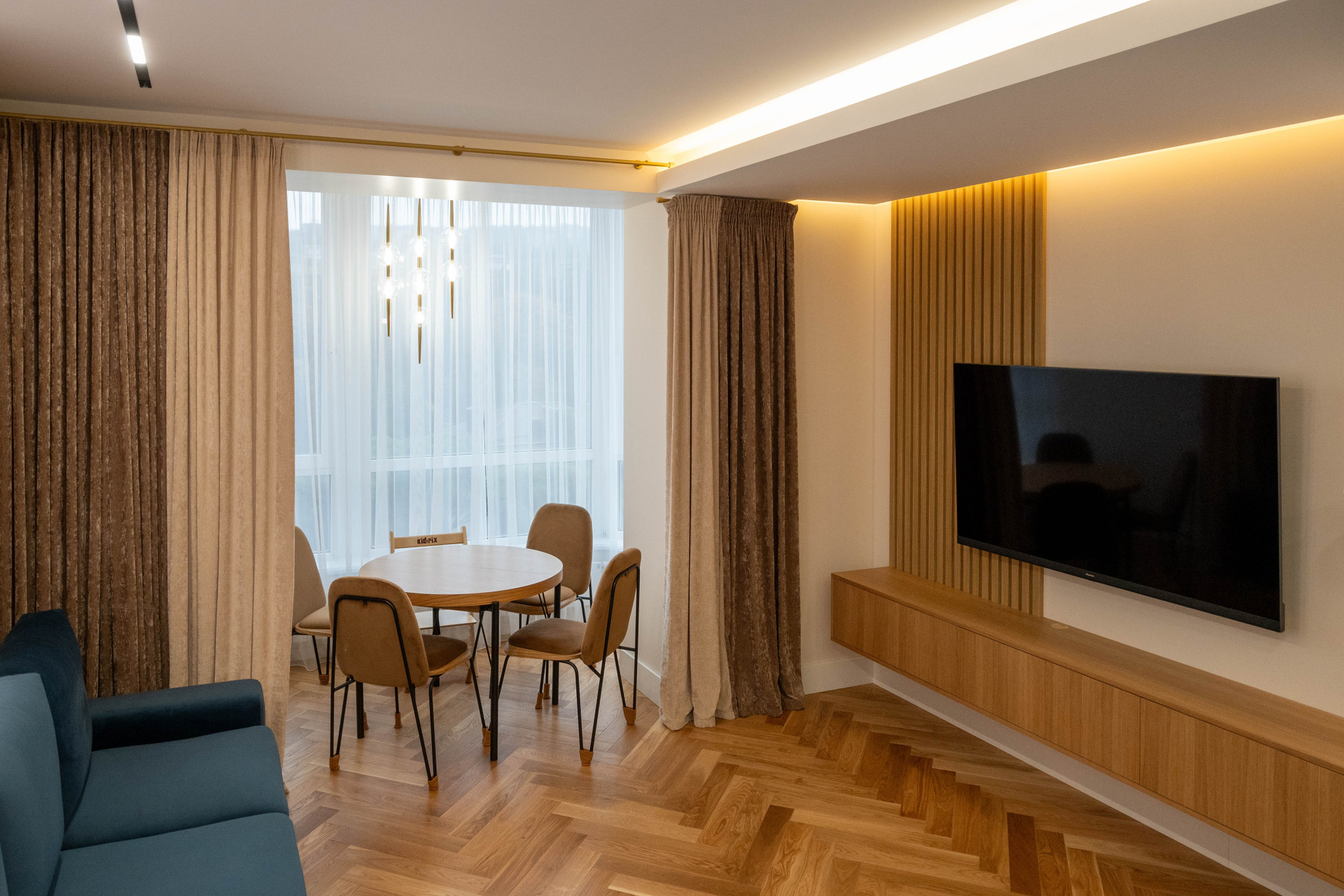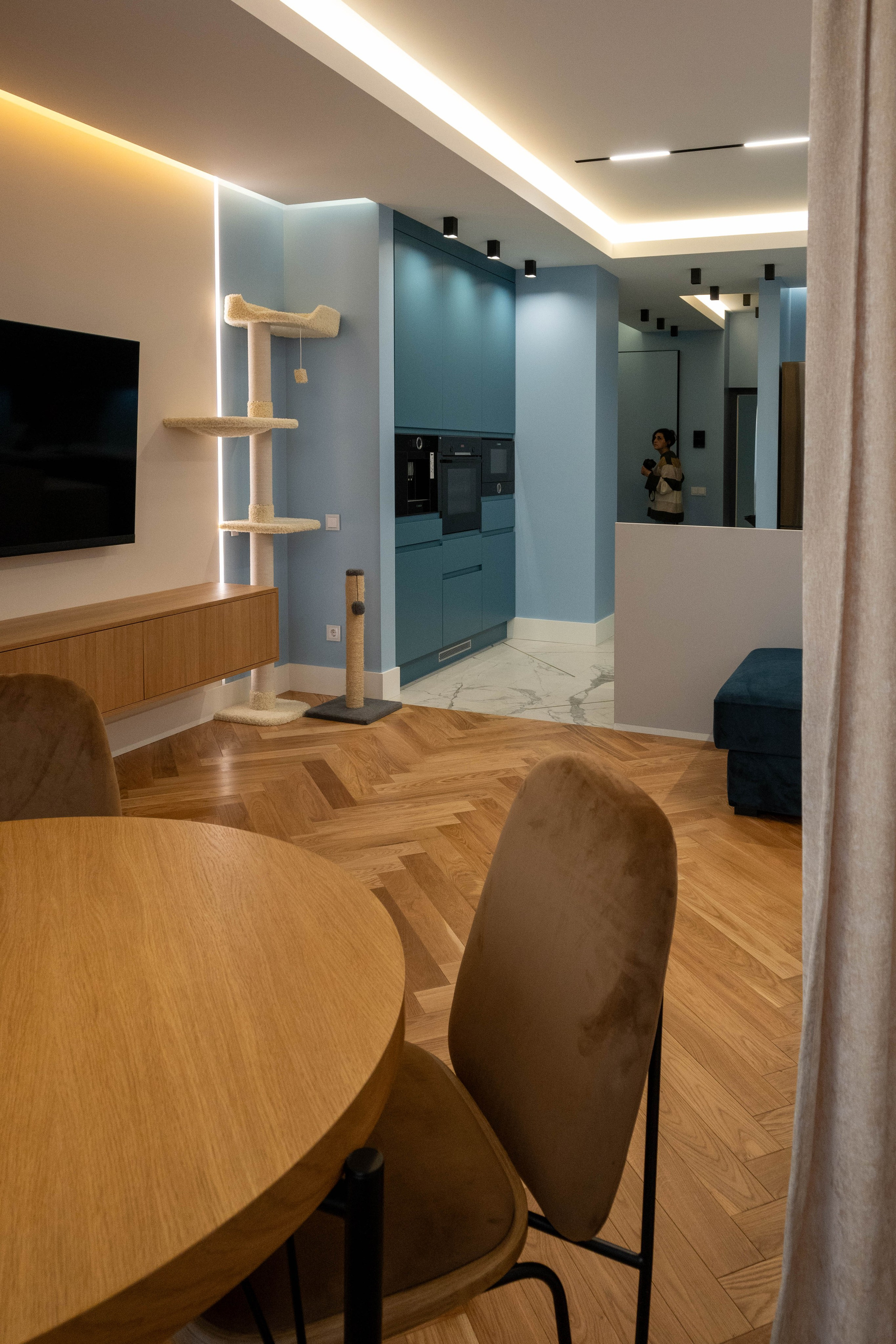 The apartment is in a modern style