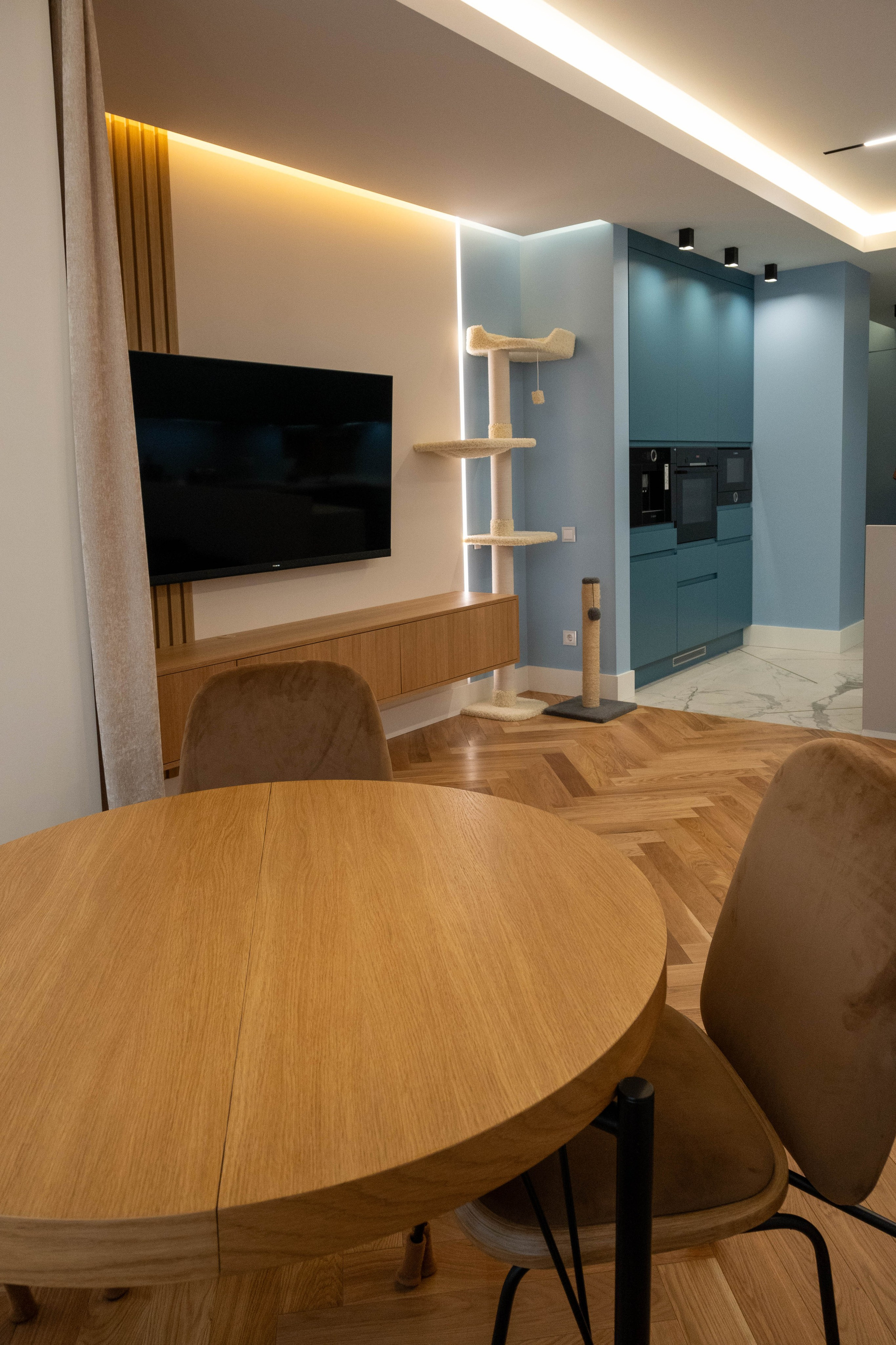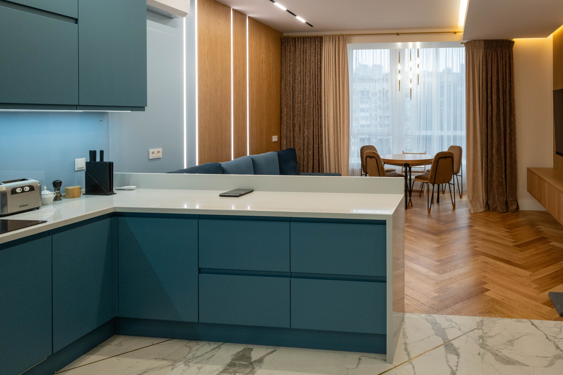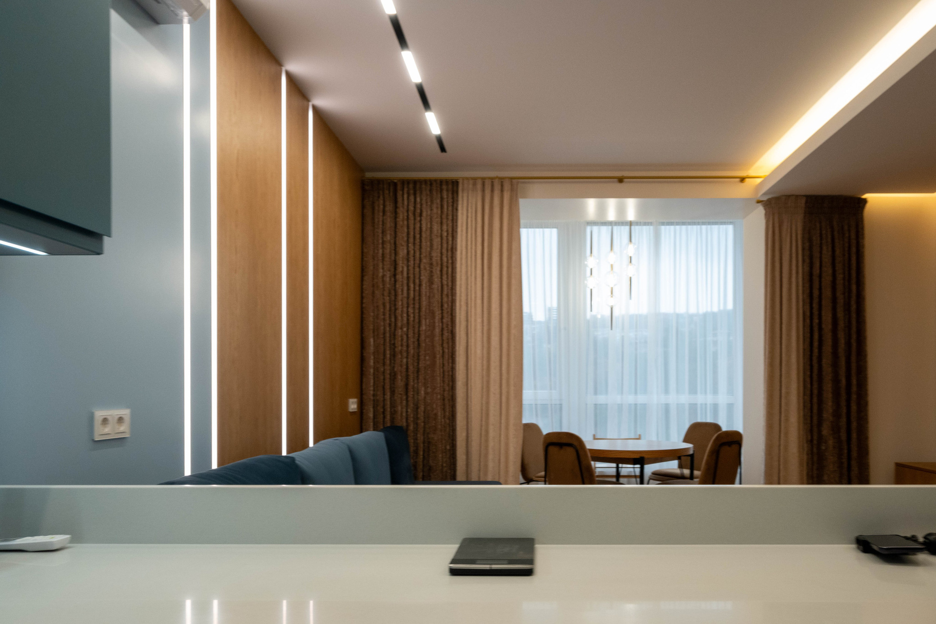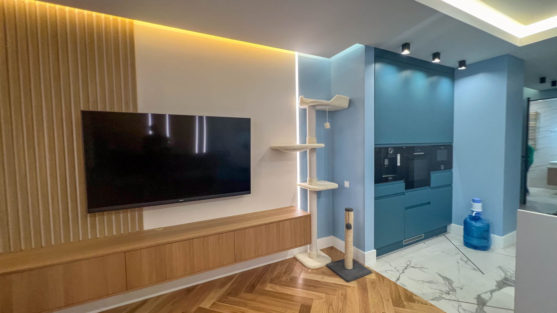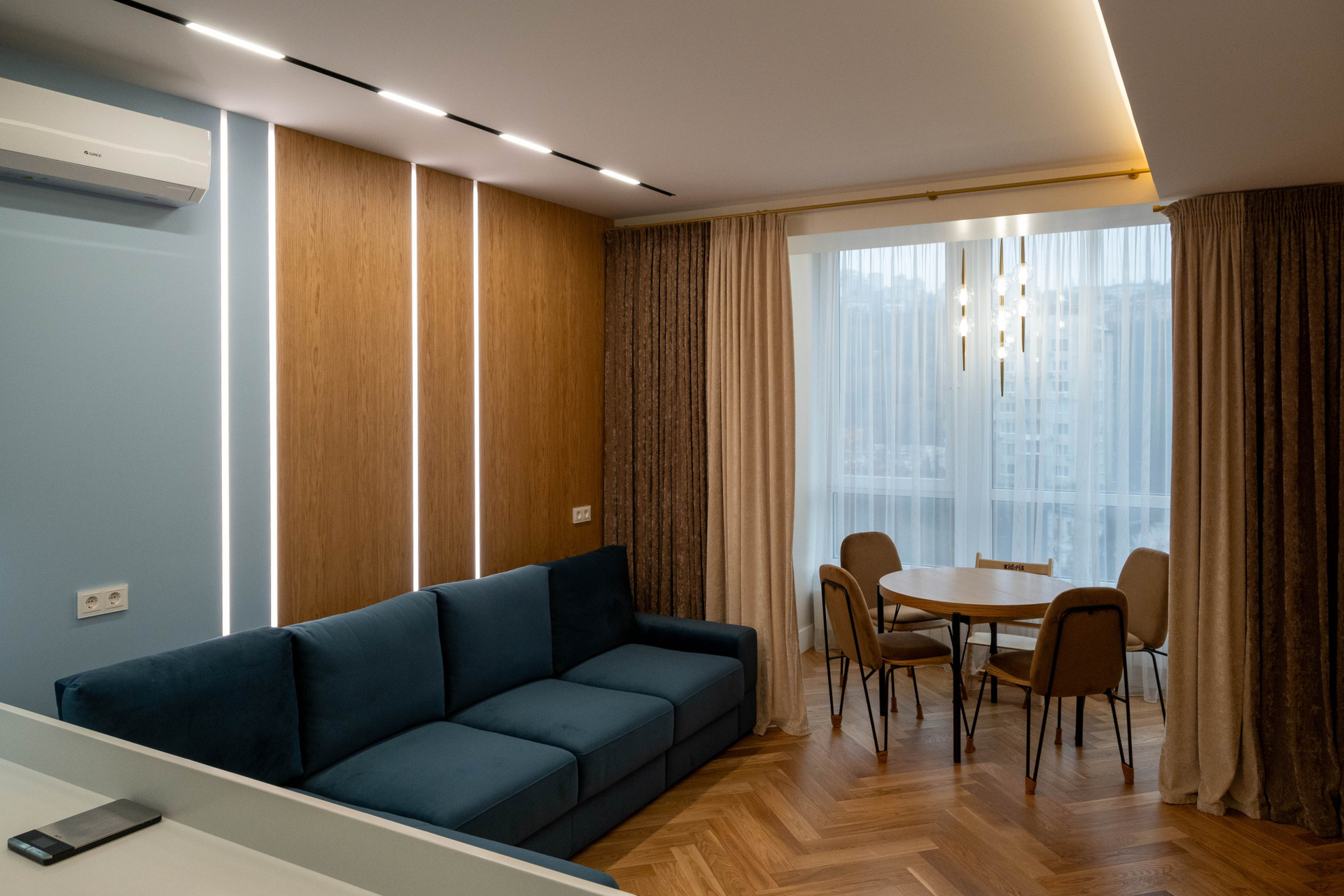 The apartment is in a modern style