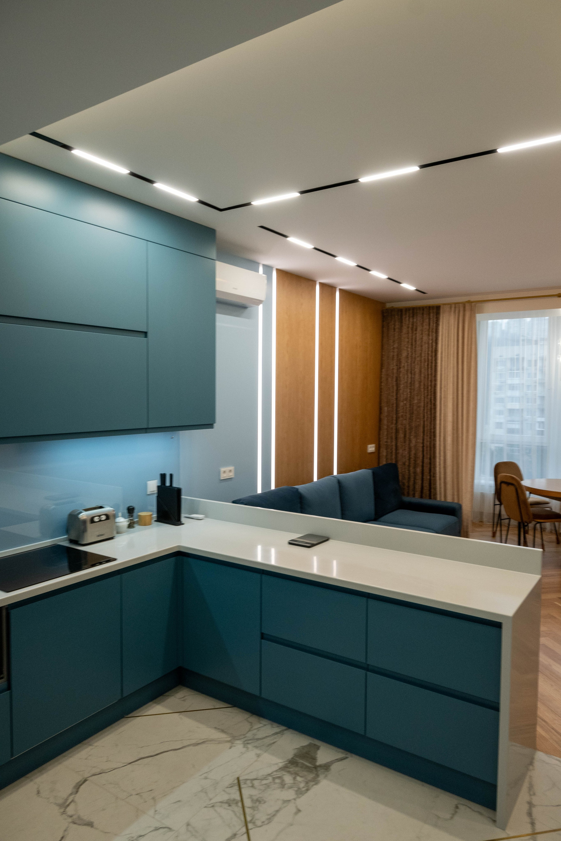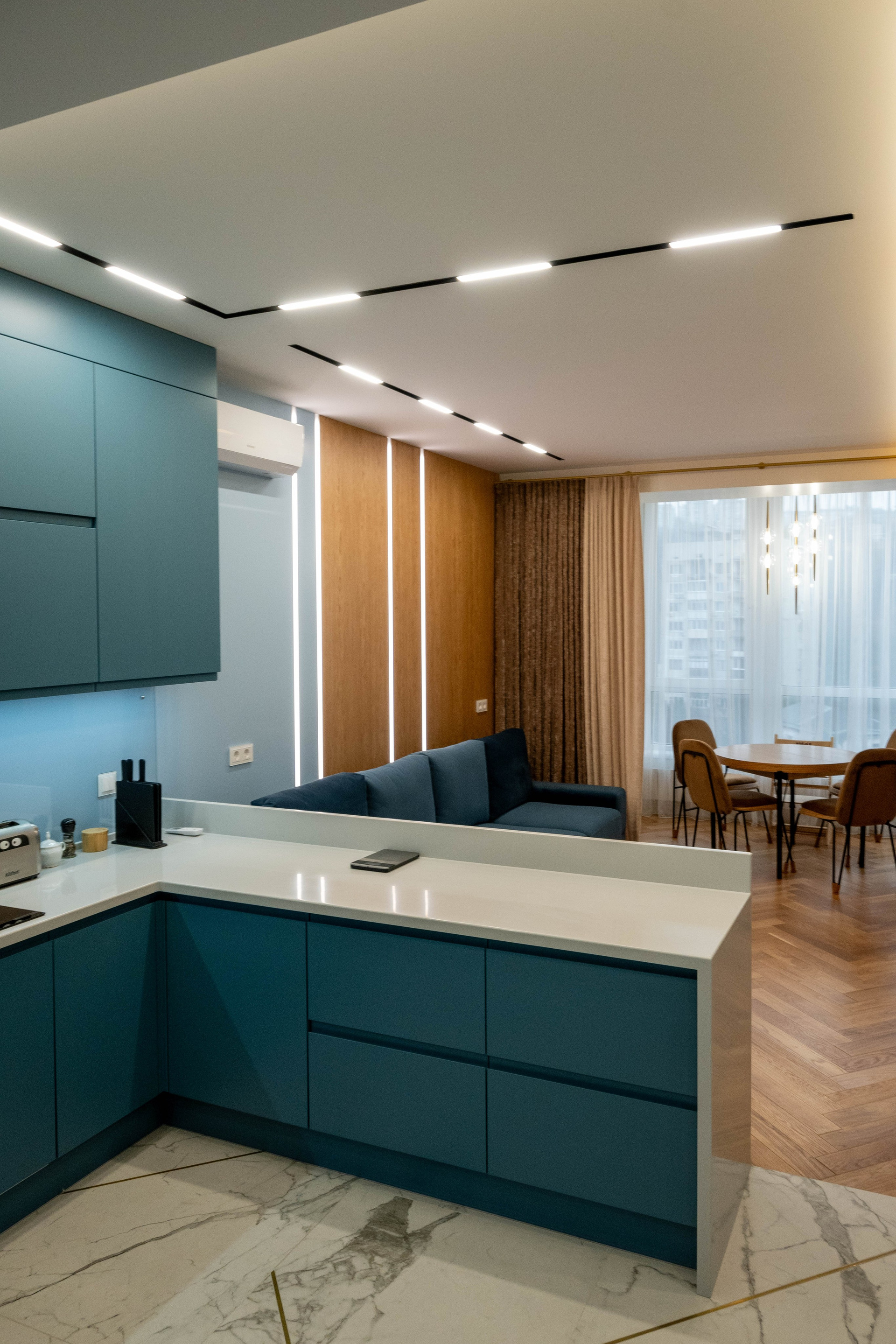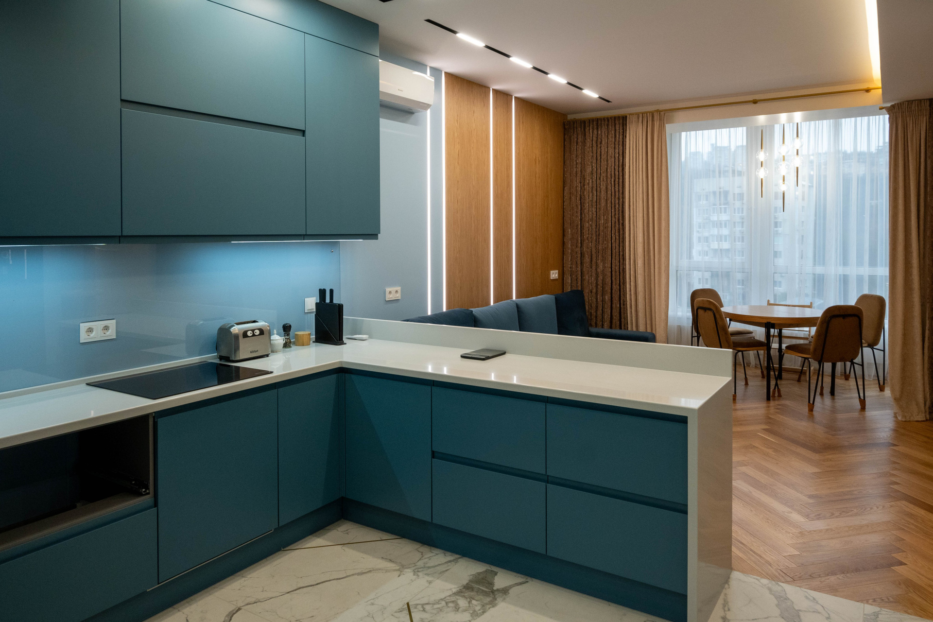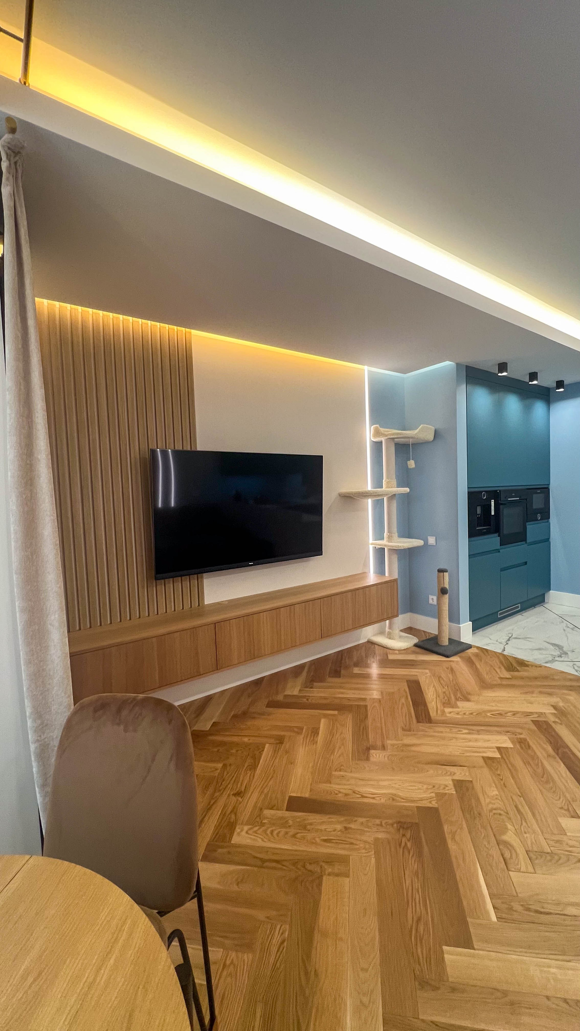 The apartment is in a modern style