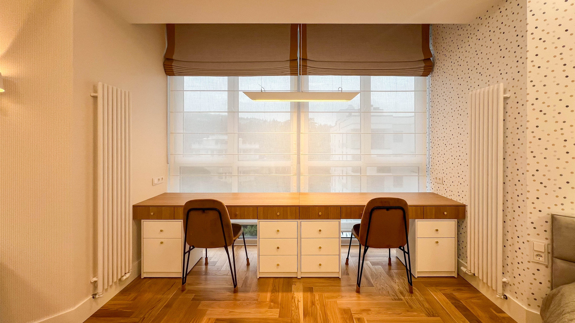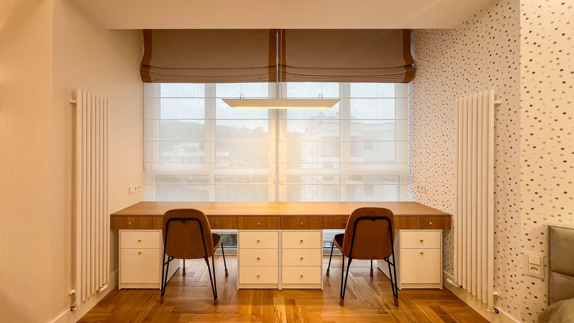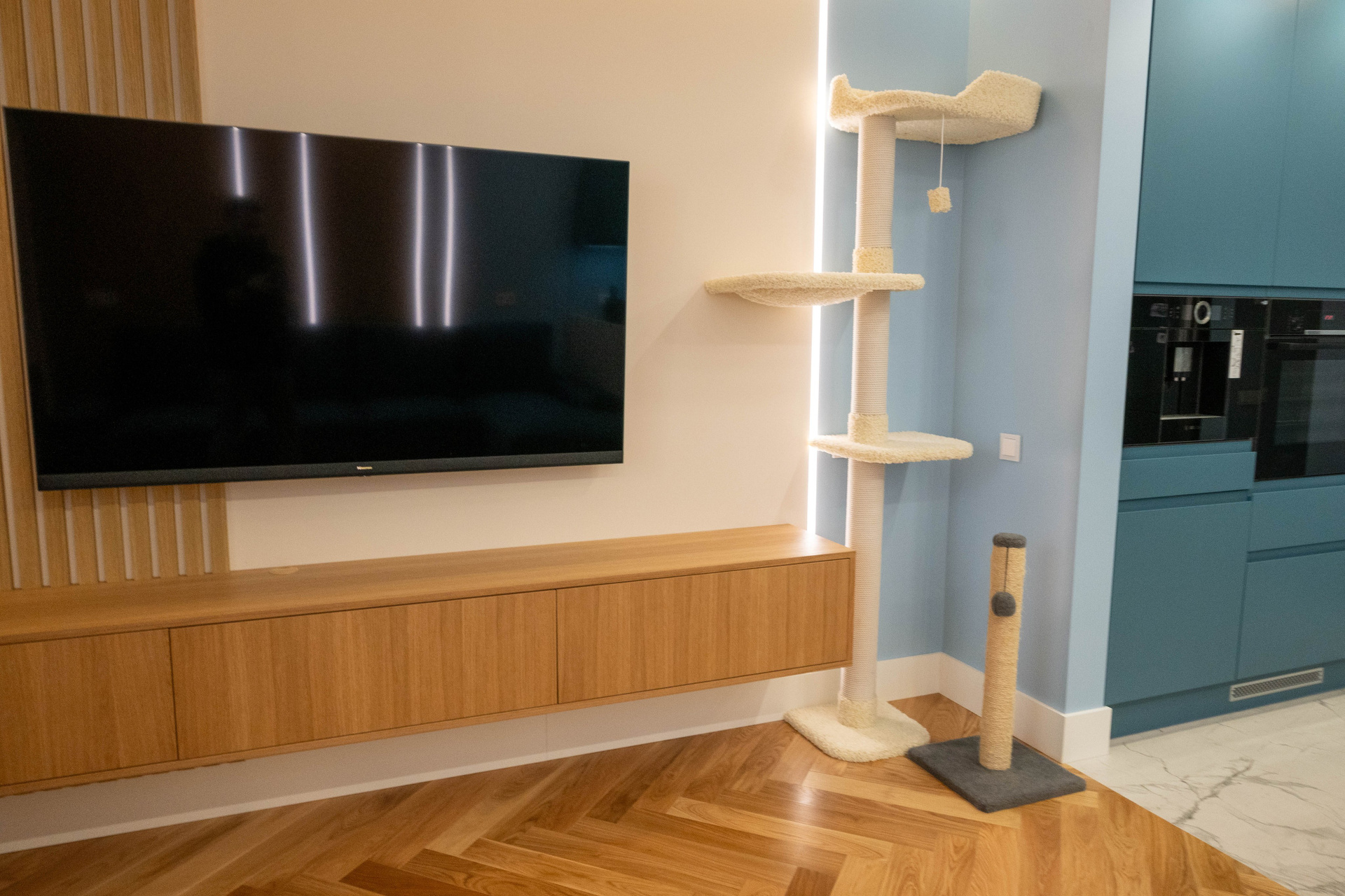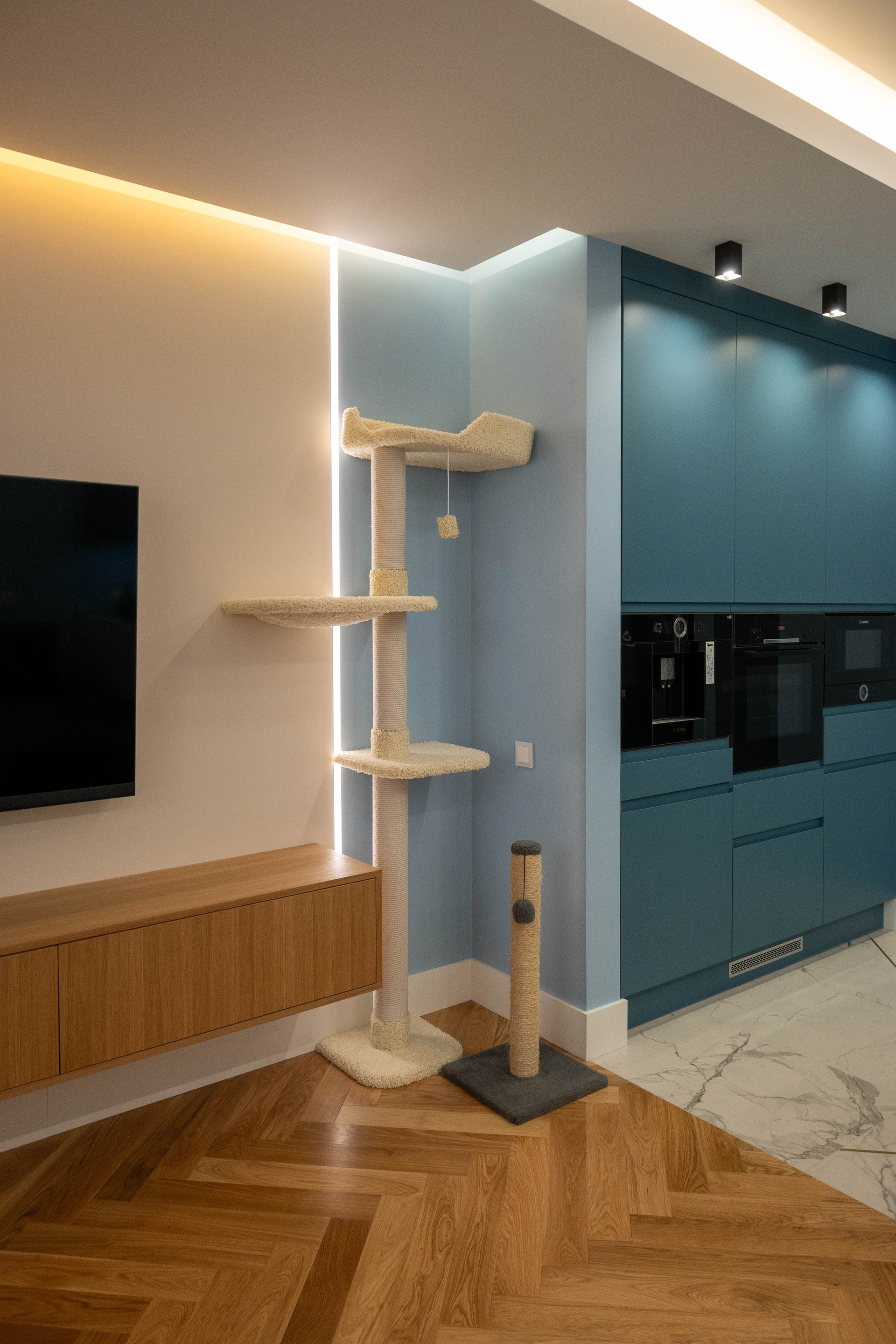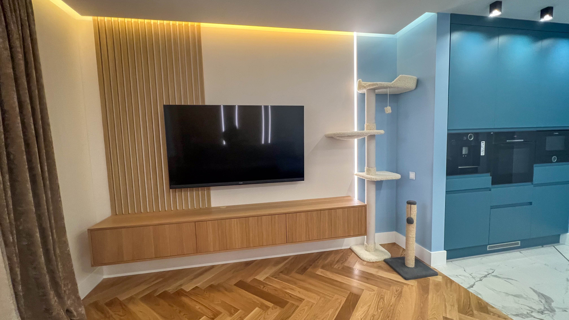 The apartment is in a modern style